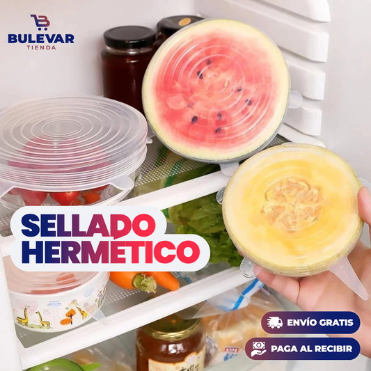 AHORRAS $55.085SET DE 6 TAPAS ELÁSTICAS DE SILICONA.