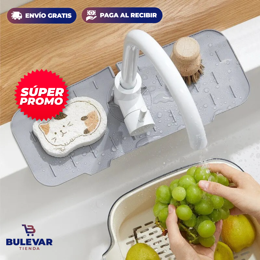 - Una pieza de silicona grado alimenticio que evita que salpiques fuera del fregadero