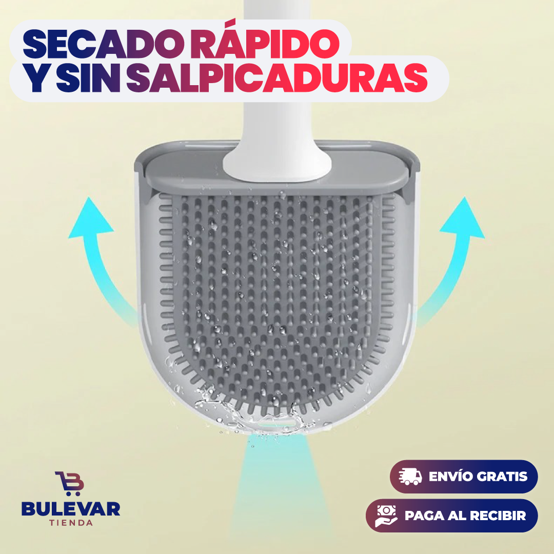 Este cepillo revolucionario ofrece una limpieza sin esfuerzo gracias a su diseño flexible y sin goteos. Con soporte de secado rápido, garantiza un baño limpio y fresco en todo momento.