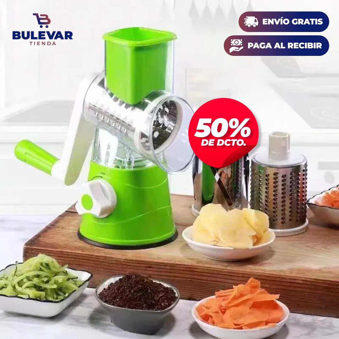 Con el Cortador Manual 3 en 1, simplificarás tus tareas de preparación de alimentos y disfrutarás de una cocina más eficiente y ordenada. Su diseño robusto y sus múltiples funciones lo convierten en un indispensable para cualquier cocinero aficionado o profesional.