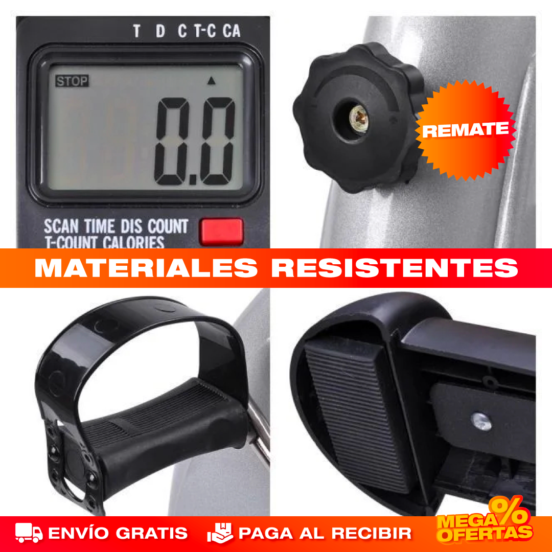 Su diseño compacto y silencioso permite colocarla bajo el escritorio o frente al sillón sin ocupar espacio. Cuenta con resistencia ajustable y una pantalla digital LCD que registra tu progreso, ¡y es perfecta para ejercitar mientras lees, trabajas o ves tus series favoritas!