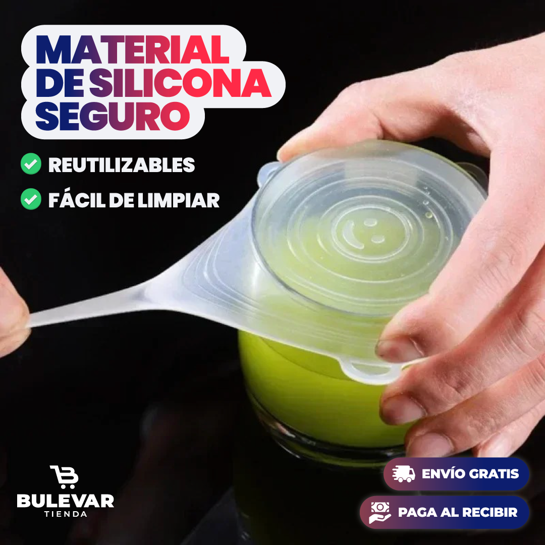 SET DE 6 TAPAS ELÁSTICAS DE SILICONA.